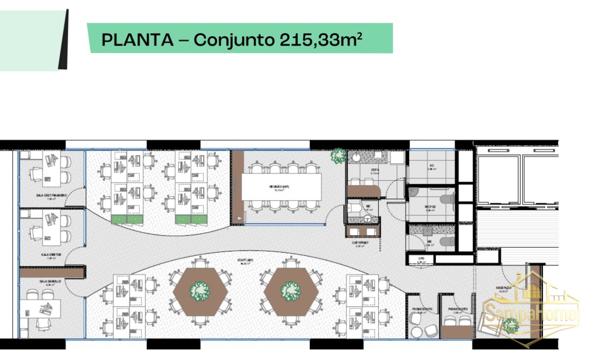 Disponibilidade futura: 8º andar, conjunto 81, com 215,33 m² e layout já instalado.